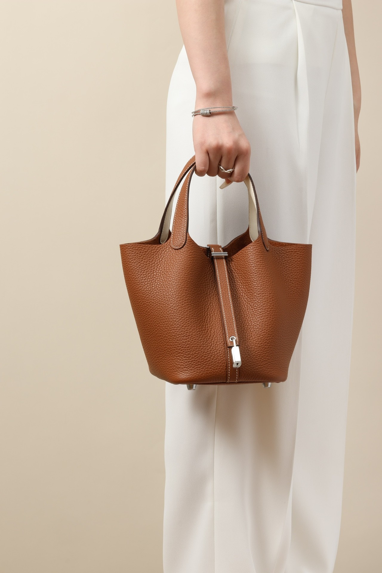 에르메스의 피코탄은 그 자체로 클래식한 매력을 지닌 가방입니다. 이 가방은 유행을 타지 않는 디자인으로, 어떤 스타일에도 잘 어울립니다. 특히, 쉐입이 아름다워서 시각적으로도 만족감을 줍니다. 로고가 과하지 않아 질리지 않고, 오랜 시간 동안 사용할 수 있는 점이 큰 장점입니다. 또한, 다양한 색상으로 제공되어 개인의 취향에 맞게 선택할 수 있습니다. 이 가방은 일상적인 외출은 물론, 격식 있는 자리에서도 잘 어울리기 때문에 추천합니다. 에르메스 피코탄은 실용성과 스타일을 모두 갖춘 아이템으로, 60대 여성에게 특히 잘 어울립니다.