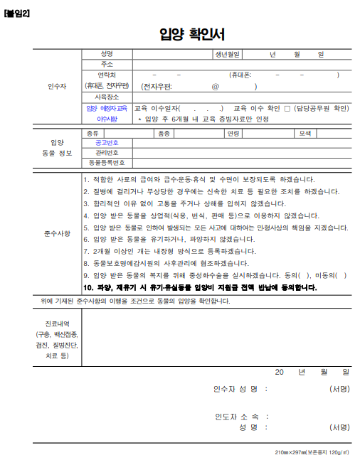 입양 후 발생한 비용의 60%를 지원하며, 1마리당 최대 15만 원까지 받을 수 있습니다. 총 지원 기준은 25만 원이며, 이를 초과하는 금액은 자부담해야 합니다. 신청 방법 및 지급 일정