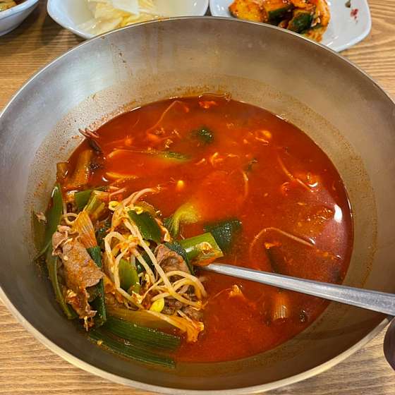 태백 선식당은 한우얼큰순두부와 한우얼큰국밥으로 유명한 현지인 맛집입니다. 얼큰한 국물에 부드러운 한우와 순두부가 듬뿍 들어가 있어 해장용으로도 그만이에요. 매콤하면서도 깊은 맛이 나서 술 한잔 한 다음 날 속을 확 풀어주는 느낌이죠. 국밥은 밥과 함께 나오는데, 국물에 밥을 말아 먹으면 든든하고 속이 편안해져요. 아침이나 점심으로도 좋고, 태백 여행 중 속이 허전할 때 들러보시면 좋을 맛집입니다. 해장이 필요할 때 강력 추천!